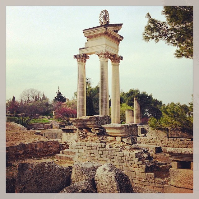 We ended the Provencal adventure with a visit to Glanum, an ancient archaeological Roman site near St. Remy. The history nerd in both of us was tickled pink, and I met my final French kitty snoozing in the middle of the museum…